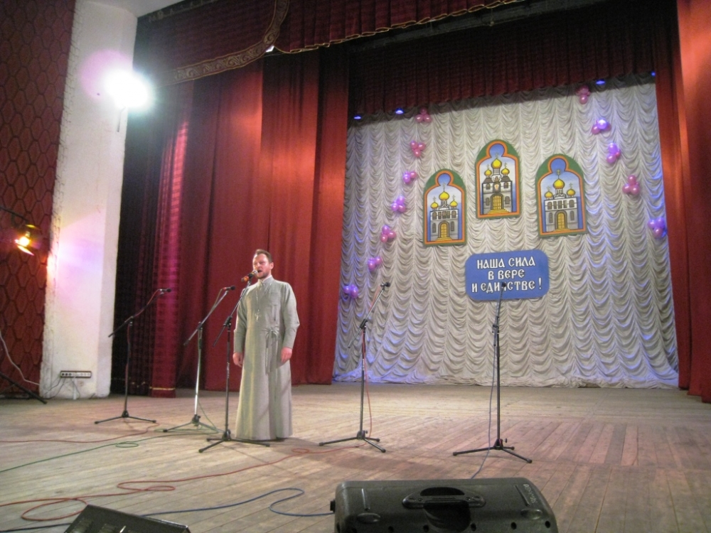 Выступление постоянного гостя и участника концертной программы настоятеля храма в честь иконы Божией Матери «Всех скорбящих радость» города Десногорска протоиерея Виталия Сладкова, исполнившего песни «Ой, стога, стога…», «Шел солдат» никого не оставили равнодушными и зал провожал отца Виталия стоя под продолжительные аплодисменты.