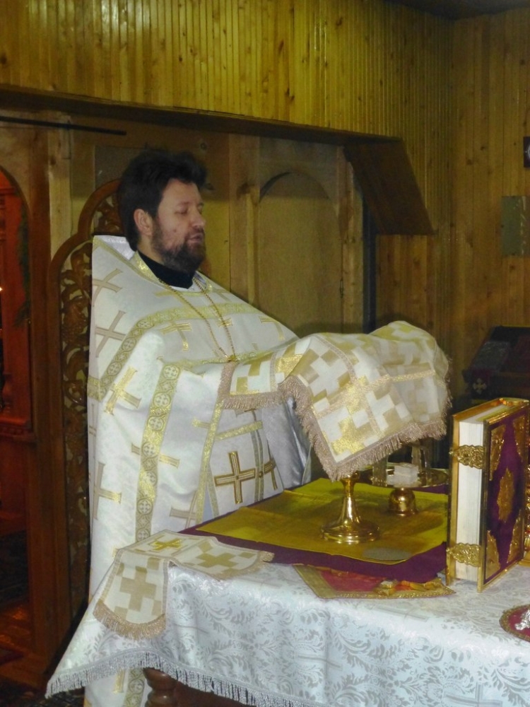 18 января в навечерие Богоявления Господня (Крещенский сочельник) священник Феодор Новак совершил богослужение в Свято-Казанском храме п.Кардымово. Особенность богослужения этого года связана с тем, что Крещенский сочельник приходится на субботу, и согласно церковной традиции Царские часы совершались накануне в пятницу, а в сам сочельник совершается Божественная литургия святителя Иоанна Златоуста, после которой следует Великая вечерня и Чин великого освящения воды.