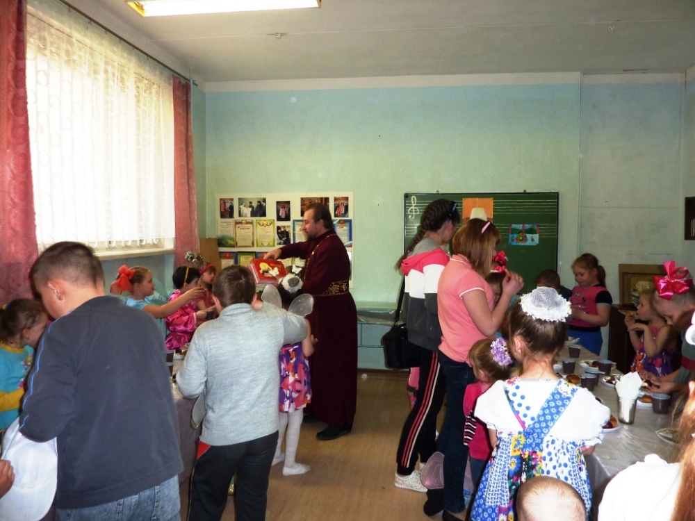 По окончании воскресной литургии по благословению благочинного Ярцевского округа протоиерея Василия Мовчанюка священник Свято-Георгиевского храма иерей Димитрий Бакакин посетил Православный Центр №1 города Ярцево, где воспитанники приготовили Пасхальный концерт.