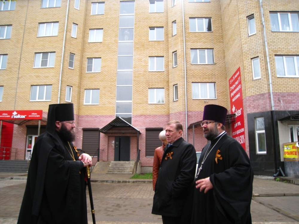 По окончании праздничных мероприятий Его Преосвященство отправился к дому, в котором недавно произошел пожар. Здесь Юрий Васильевич ознакомил Владыку с событиями, произошедшими ночью, о масштабах пожара и рассказал, какие работы проводятся в данный момент для ликвидации последствий трагедии. Владыка Исидор пожелал Панкову Ю.В. помощи Божией и терпения в нелегкой ситуации.
