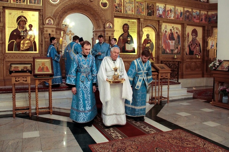 По окончании литургии правящий архиерей и духовенство вознесли молитвы у иконы «Введение во Храм Пресвятой Богородицы».