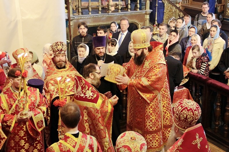 Пасхальные песнопения исполнил Архиерейский хор (регент – Елена Фролова).