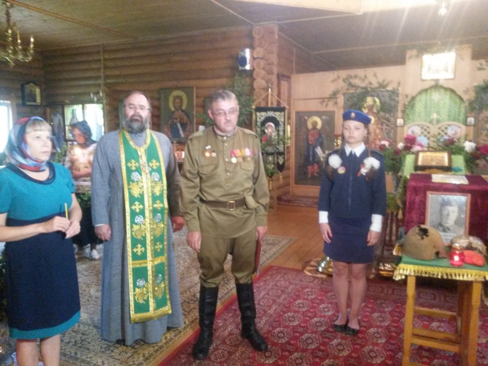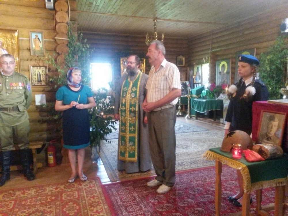 Передача останков состоялась в Свято-Георгиевском храме. Ко всем собравшимся обратился командир поискового отряда «Безымянный» Серков А.П. Андрей Павлович рассказал какая была проделана работа по поиску останков и родственников, погибшего воина. Родственникам были преданы медальон, и личные вещи, обнаруженные с останками.
