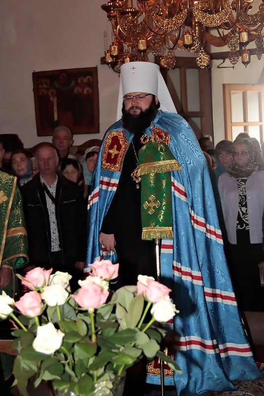 Его Высокопреосвященству сослужили: настоятель монастыря архимандрит Антоний (Мезенцев), благочинный Смоленского городского округа протоиерей