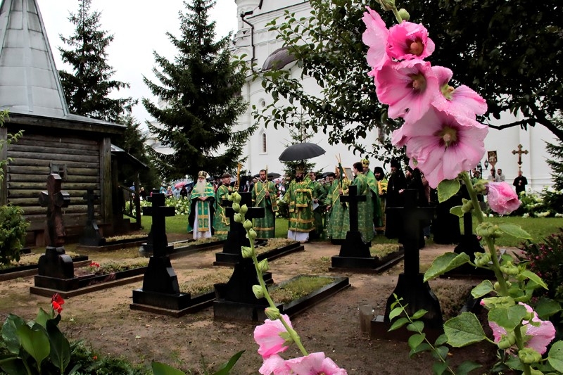 По окончании литургии глава митрополии, духовенство, миряне совершили крестный ход вокруг храма, а затем вознесли молитвы и иконы преподобного Герасима и у раки со святыми мощами Болдинского Чудотворца.