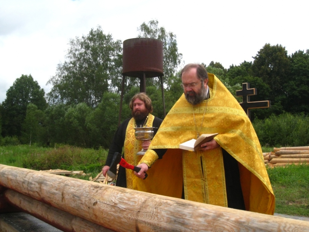 На месте будущего храма уже стоит фундамент и лежат первые венцы будущих стен. Все готово для дальнейшего строительства.