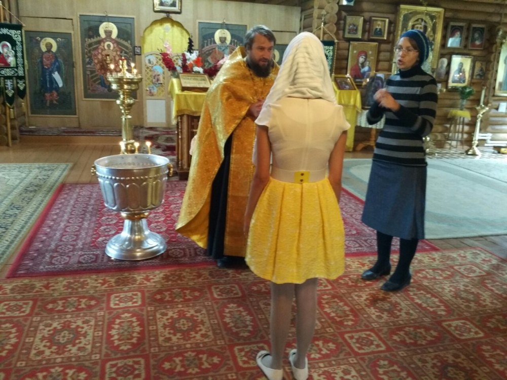 По благословению отца Василия клирик Георгиевского храма протоиерей Димитрий Бакакин совершил это необычное крещение. Отец Димитрий проговорил с сурдопереводчиком основные моменты, которые обязательно необходимо перевести для Виктории. Мефёд Л.В. позволила Виктории погрузиться в молитву и, несмотря на физические препятствия, сделать таинство понятным.