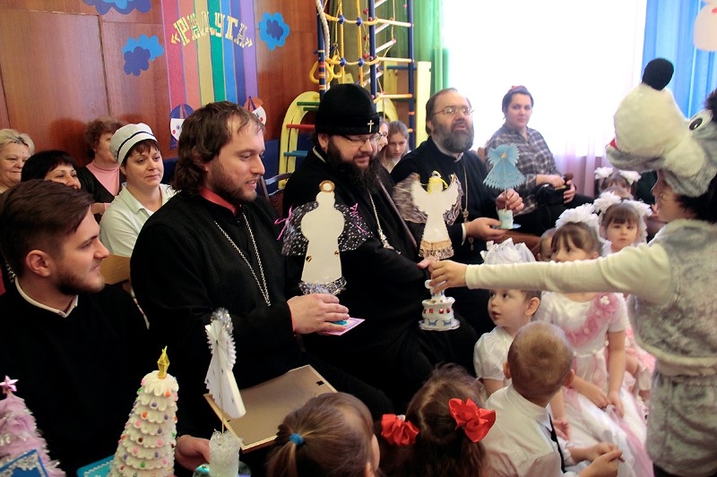Ребята приготовили для гостей увлекательное театрализованное представление, после которого преподнесли в дар правящему архиерею и духовенству поделки, выполненные своими руками.