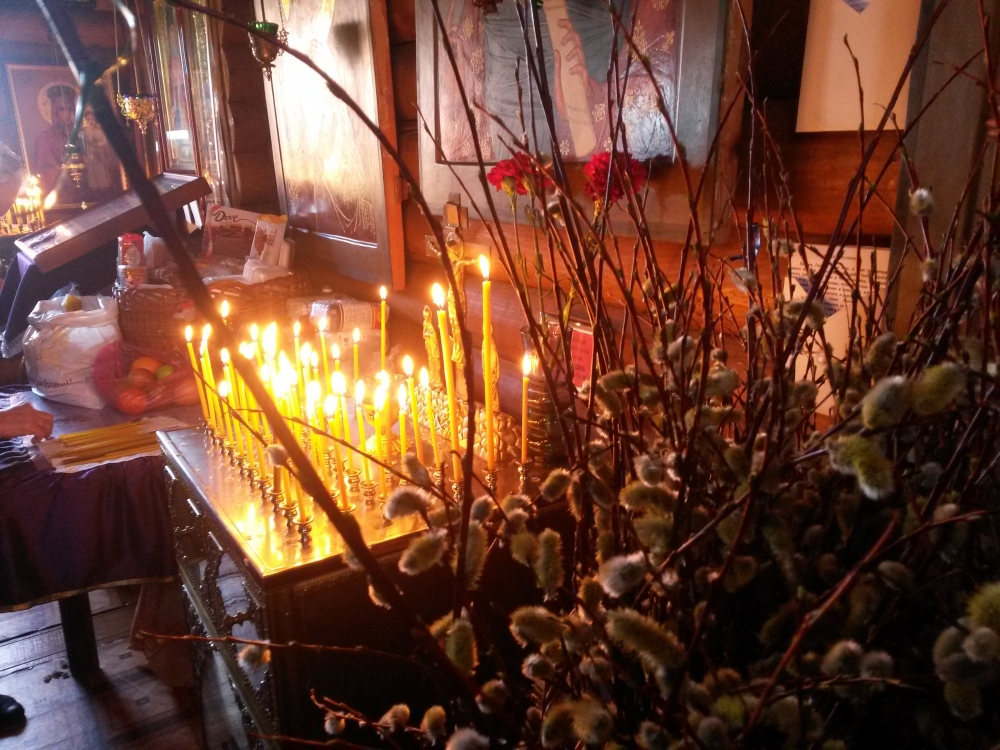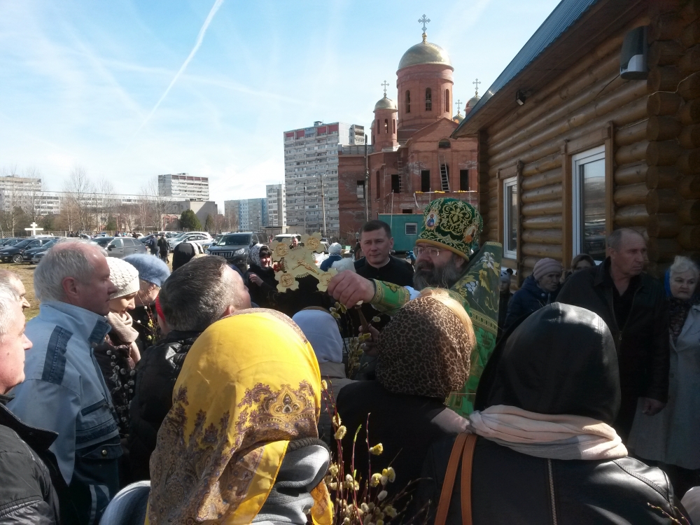 По окончании богослужения все переместились на улицу, где отец Василий обратился со словами поздравления ко всем присутствующим. После проповеди был совершен молебен, во время которого были освящены вербы.