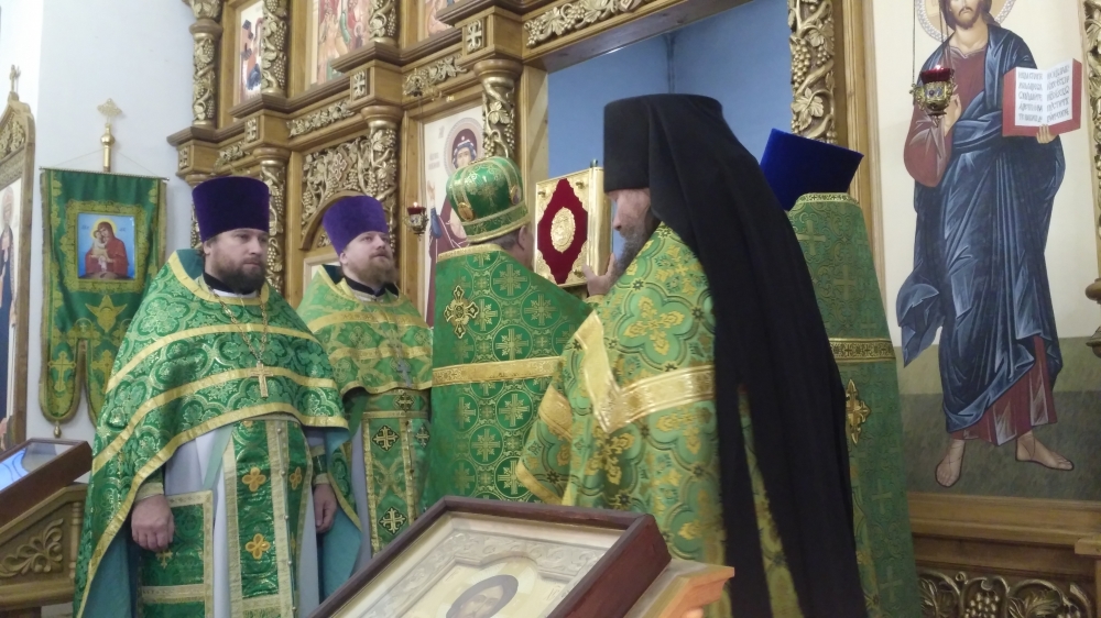 Возглавил богослужение протоиерей Николай Канчук. Ему сослужили: настоятель храма иерей Алексей Лупехин, протоиерей Димитрий Бакакин, иерей Евгений Иванов, иеромонах Евфимий (Бакакин), иерей Сергий Чайкин, иерей Алексей Куликов.