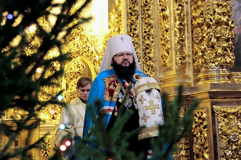 От клира и мирян Высокопреосвященнейшего митрополита Исидора с Рождеством Христовым поздравил старший священник кафедрального собора протоиерей Михаил Горовой, пожелав правящему архиерею помощи Божией в несении архипастырского служения, доброго здоровья, многие лета.