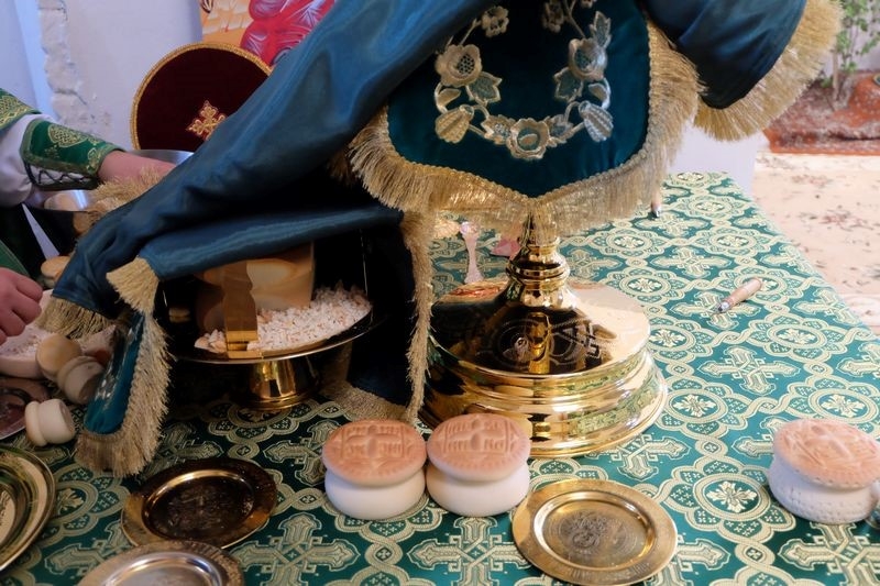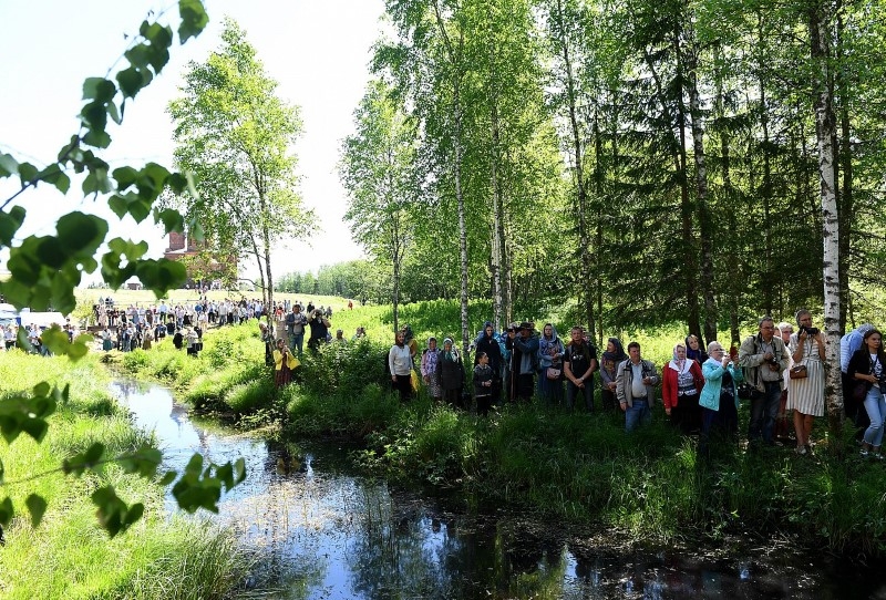 После Литургии от Спасо-Преображенского собора торжественное шествие проследовало к истоку Волги, где было совершено малое водоосвящение.