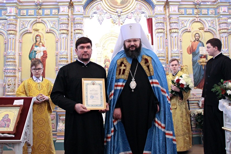 Также митрополит Исидор вручил клирику Ярцевского благочиния диакону Сергию Зуеву благословенную Архиерейскую грамоту в связи с 40-летием со дня рождения.
