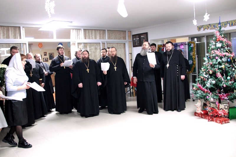 Затем в актовом зале храма архипастырь, духовенство и миряне исполнили Рождественские песнопения и колядки, после чего всех ожидала праздничная трапеза.