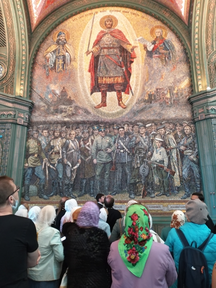 По прибытию на территорию комплекса для группы была проведена экскурсия по храму, вовремя которой все познакомились с главными этапами строительства, особенностями архитектуры, увидели символизм, посвященный победе в Великой Отечественной войне.