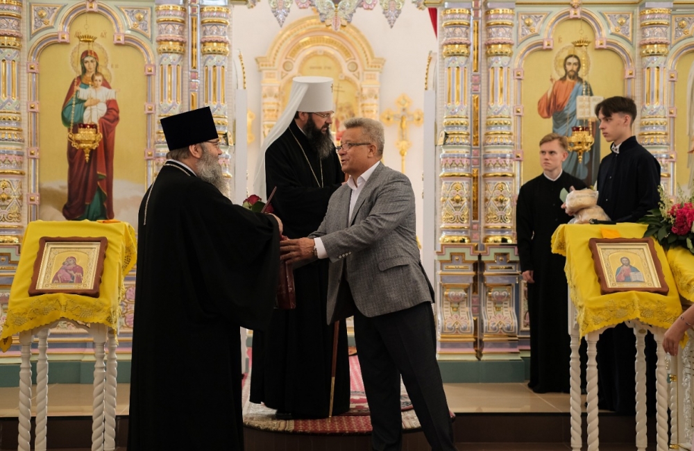 Протоиерей Василий Мовчанюк поблагодарил Высокопреосвященнейшего митрополита Исидора, архимандрита Антония (Мезенцова) с братией и игумению Антонию (Егорову) с сестрами, всех прихожан и гостей храма за теплые слова поздравления.