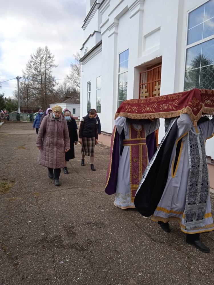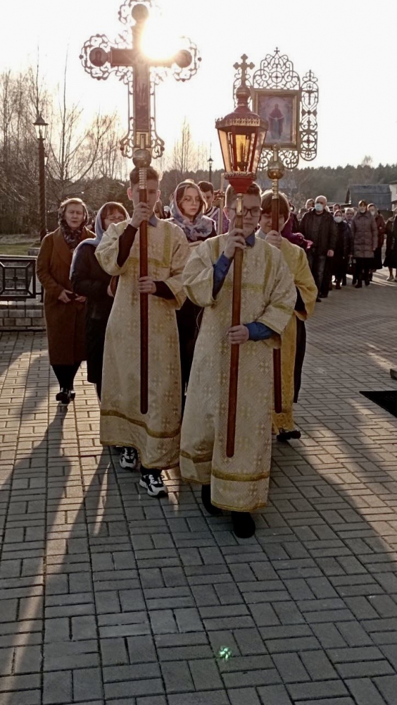 В память об этом духовенство и верующие проносят плащаницу вокруг Храма.
