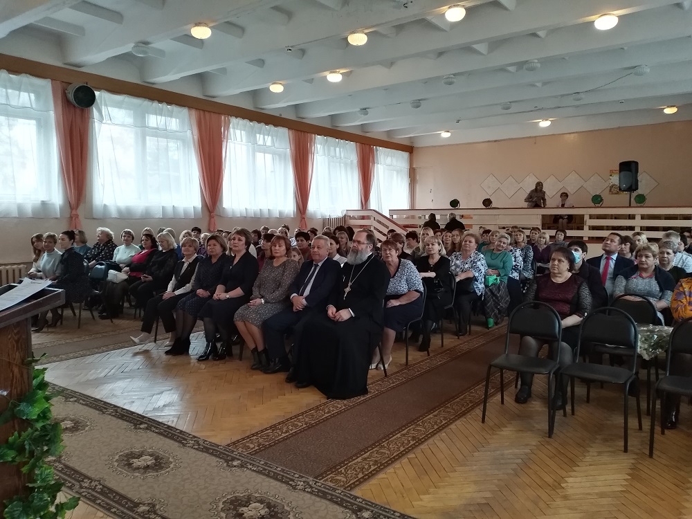 В актовом зале СШ №2 города Ярцево собрались учителя Ярцевского района для торжественного мероприятия, на котором присутствовали глава Муниципального образования «Ярцевский районом» Макаров В.С., депутат Смоленской областной Думы Васильева О.Н., благочинный Ярцевского округа протоиерей Василий Мовчанюк и иные представители районной администрации.