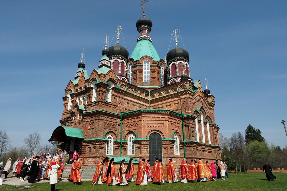 После Божественной литургии был совершен пасхальный Крестный ход вокруг храма.