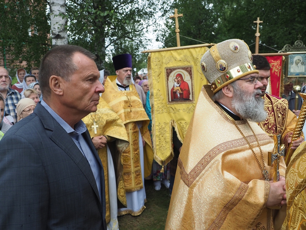 Затем был совершен Крестный ход вокруг храма, во время которого его участники молились о здравии, о родных и близких, об Отечестве, о городе Ярцеве. Во время Крестного хода Владыка митрополит совершил освящение памятника, который был установлен на могиле почившего протоиерея Вадима Капитонова. Также были вознесены заупокойные молитвы по выдающимся ярцевским и смоленским подвижникам – архимандриту Вадиму (Малиновскому) и архимандриту Аркадию (Недосекову).